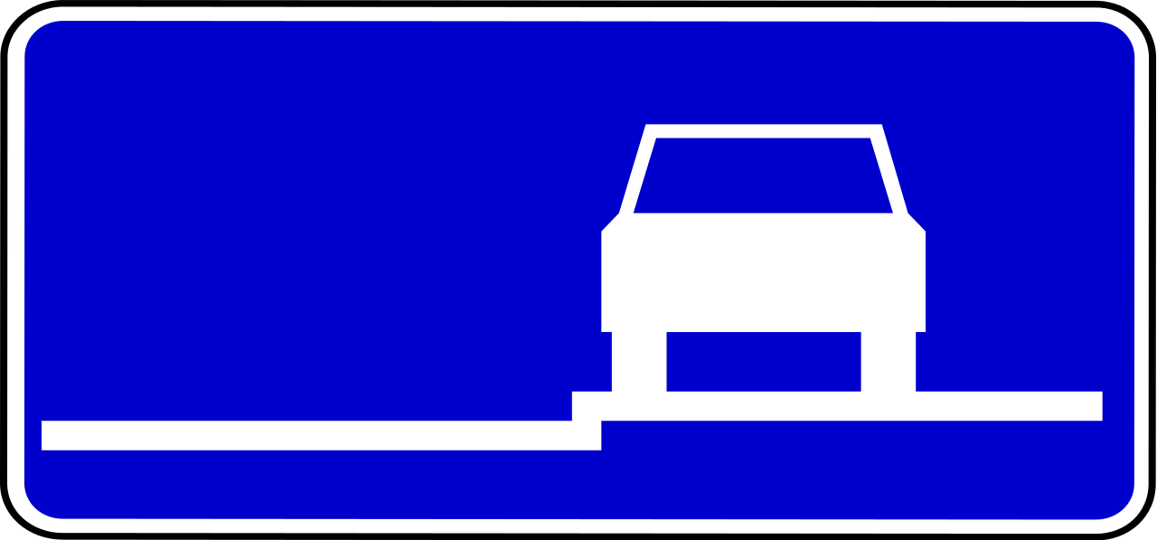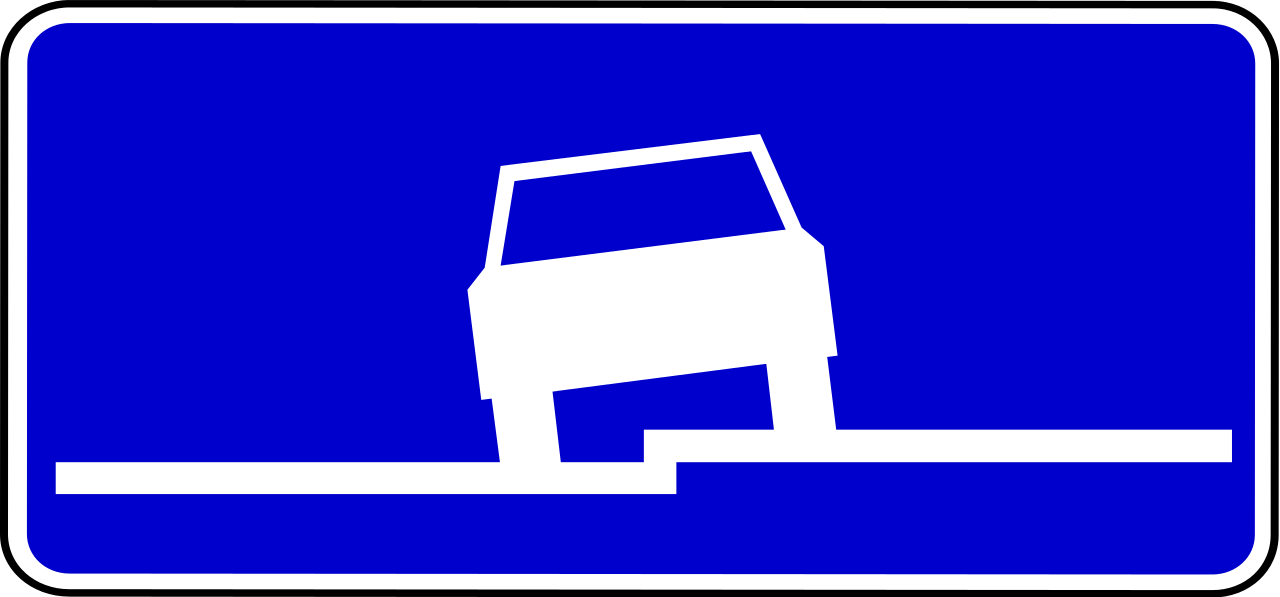 Dieses Verkehrszeichen warnt vor einem weichen Seitenstreifen. Der Seitenstreifen kann abgenutzt, weich, rutschig oder uneben sein.