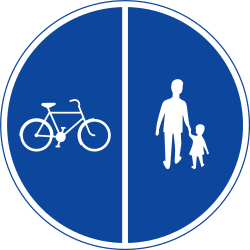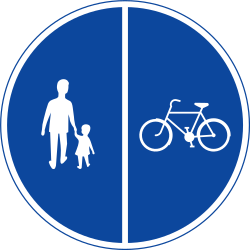 Mandatory divided path for pedestrians and cyclists.